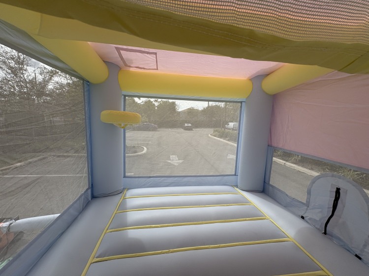 - OCCUPANCY: A maximum of 5-6 kids of equal size at one time for bounce houses, and 1 person at a time for slides is what most inflatable manufacturers recommend.